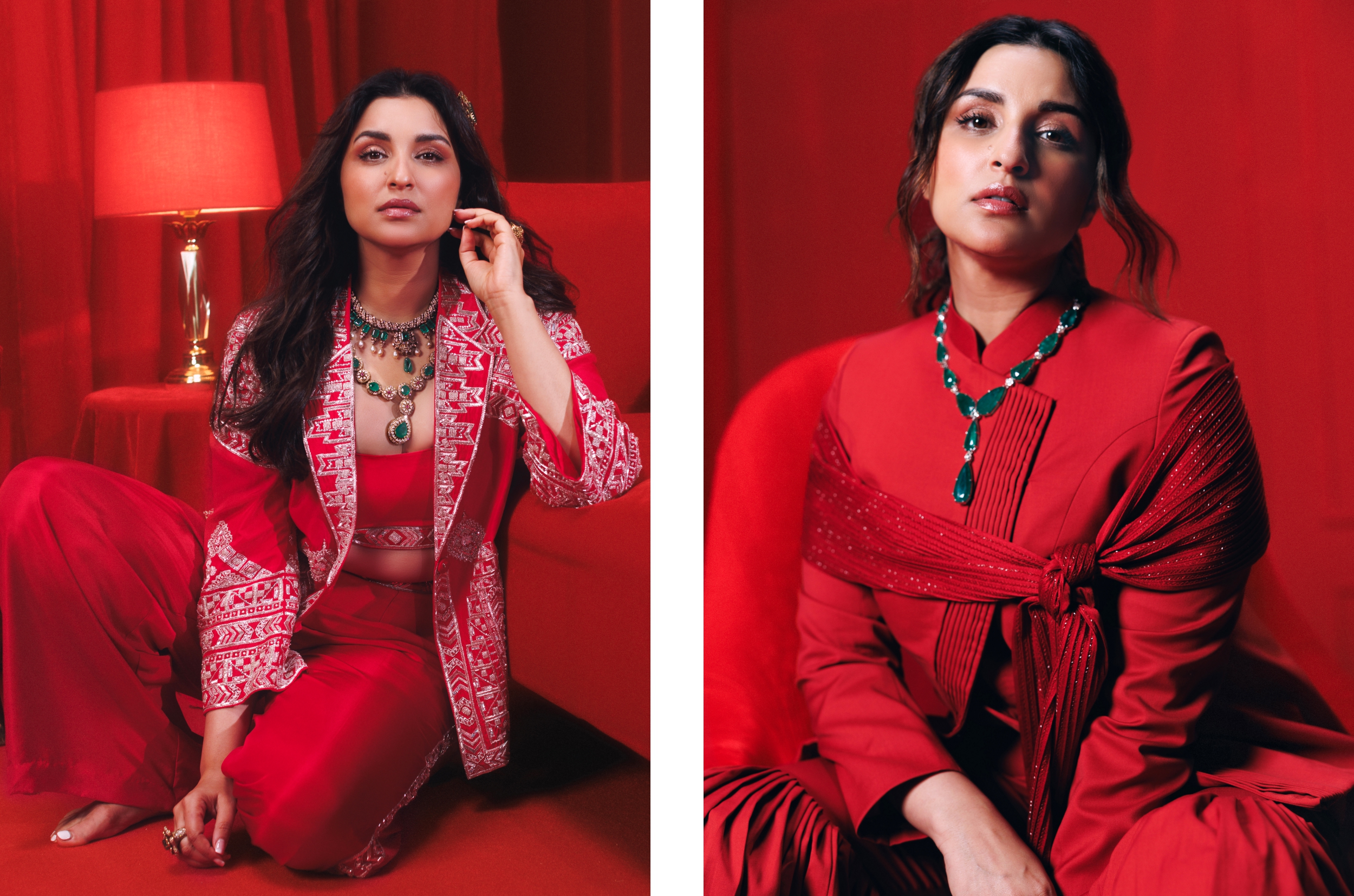 A self-proclaimed “practical” romantic, Parineeti finds joy in a grounded idea of love; one inspired by the bond her own parents share. “Love, to me, means the absolute freedom to be yourself,” she says with characteristic candour, as we settle into the conversation. “You could be your worst dressed, eat as you please, do whatever you want to—love means not needing to put on a show for your partner”.