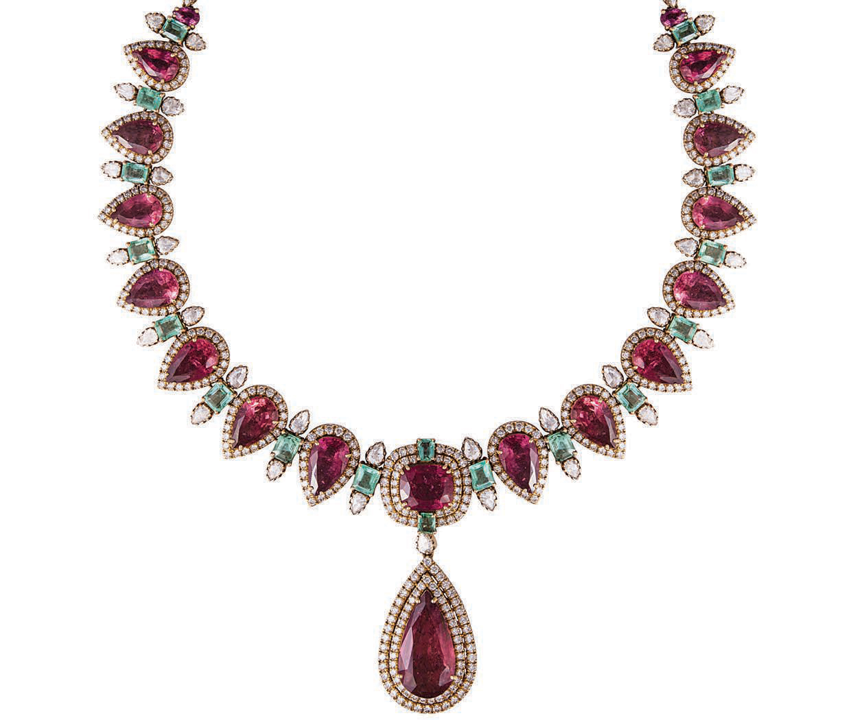 “You can never go wrong with a jadau or polki necklace, it is after all a true emblem of tradition. Next up, diamond earrings. Studs or chandeliers make for versatile pieces that can be styled up or down,” says Mandaliya. “A larger-than-life cocktail ring and stackable bracelets are arm candies you’ll find yourself wearing time and again. And, finally, the evergreen charm of chand balis and jhumkis is truly unmatched.”