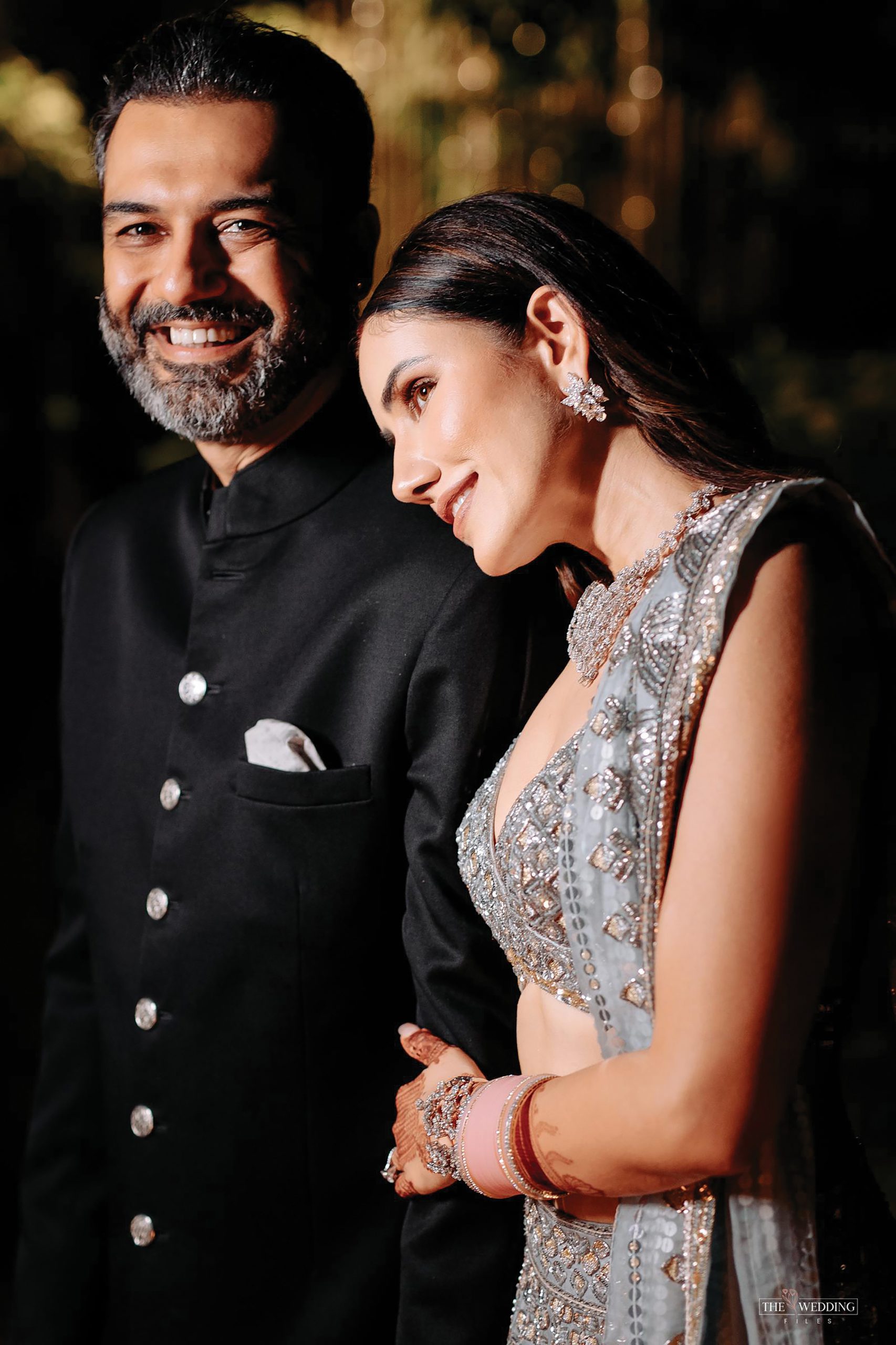 SS: “For the reception, I wanted bling. But I alsowanted it to be subtle, so the grey-blue Manish Malhotra lehenga seemed perfect. I knew it would match with my pink chooda as well as my sindoor and mangalsutra. Plus, Ashesh was wearing a black achkan, so my look matched perfectly with his.”